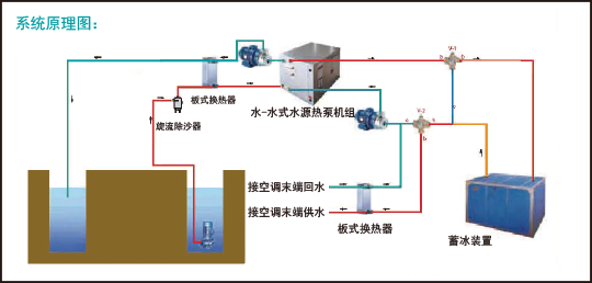 系统形式:地下水水源热泵系统结合冰蓄冷
